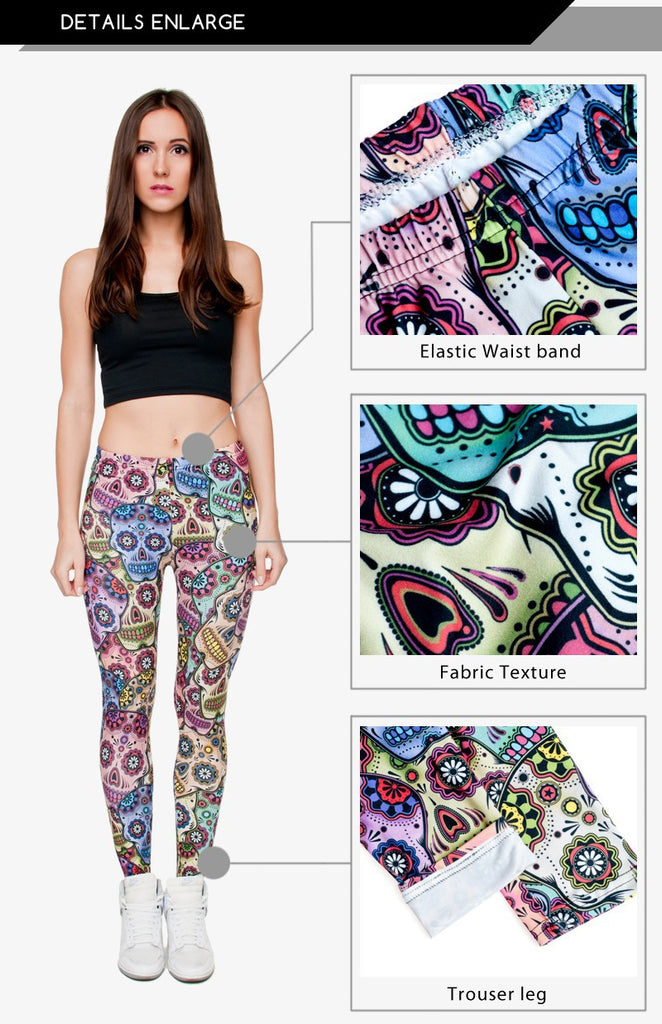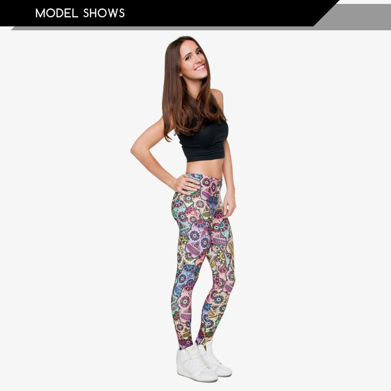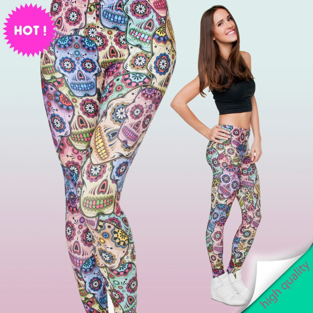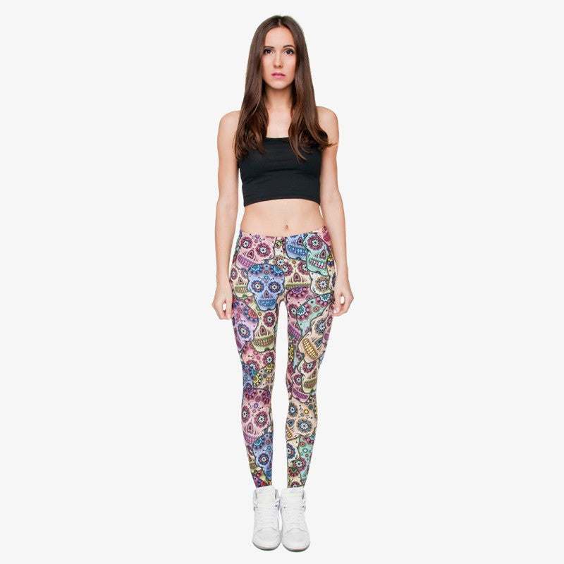 3D Leggings Mexican Skull Womens Spring - Summer Casual Fitness Pants