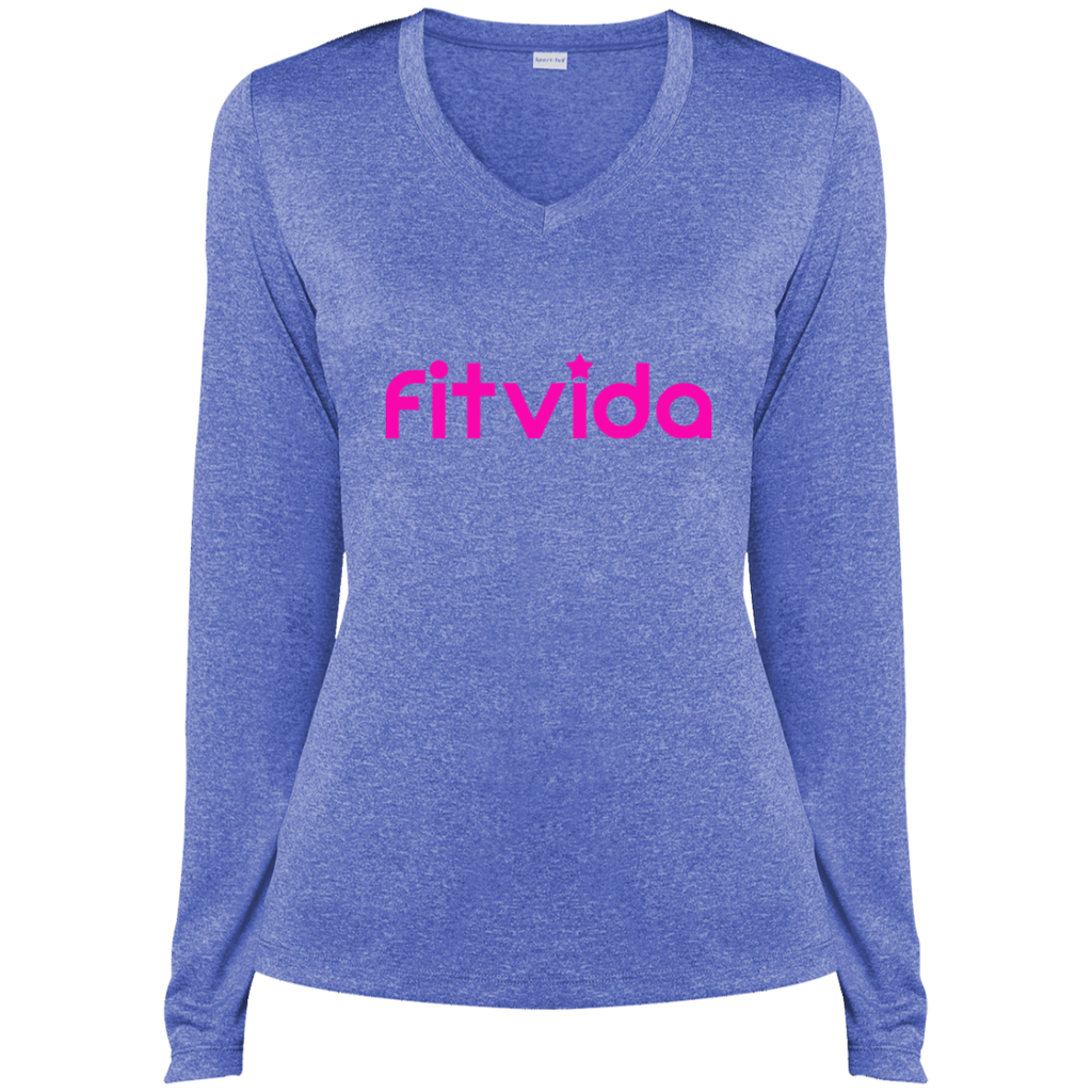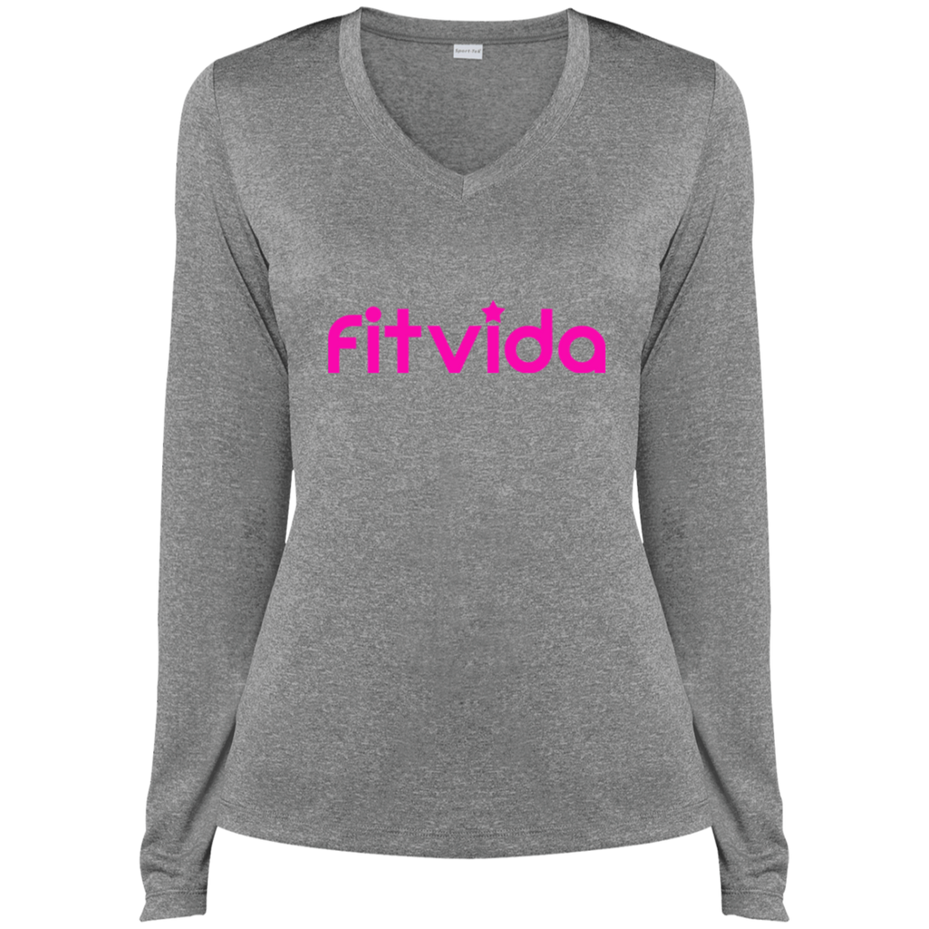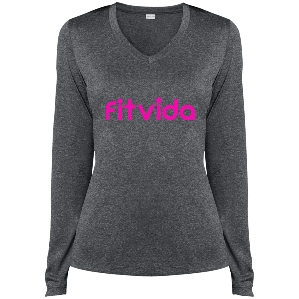 FITVIDA LST360LS Sport-Tek Ladies' LS Heather Dri-Fit V-Neck T-Shirt